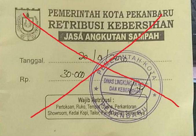 Bayar sampah di Pekanbaru saat ini tidak lagi tunai melalui karcis, langsung transfer saja ke rekening daerah.