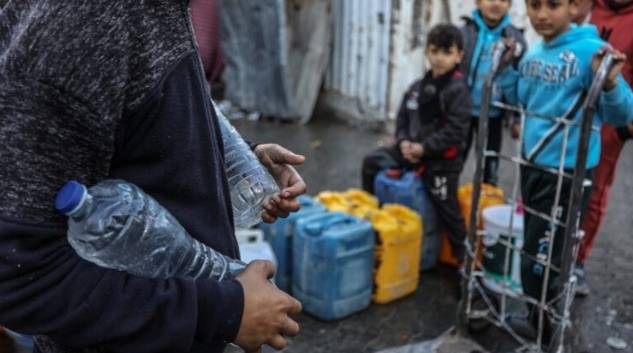 Warga jalur Gaza mengantri air bersih yang sangat sulit didapat.