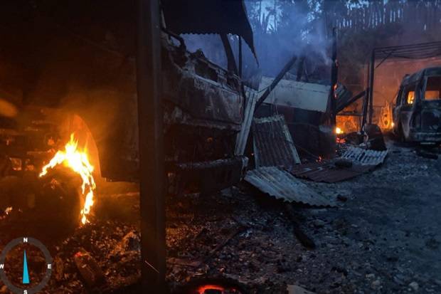 Kelompok Kriminal Bersenjata (KKB) kembali melakukan aksi penembakan dan pembakaran bangunan maupun kendaraan di Bandara Bilorai Kabupaten Intan Jaya. Foto Bidhumas Polda Papua