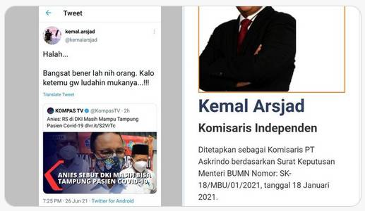 Komisaris Askrindo Kemal Arsjad Ingin Ludahi Wajah Anies Baswedan, Netizen Bandingkan dengan Kasus Ahmad Dhani
