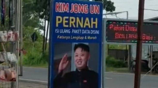 Konter Pulsa di Bangkalan Ini Pasang Spanduk Bergambar Kim Jong Un, Warganet: Beli Rudal Ada Gak Bang