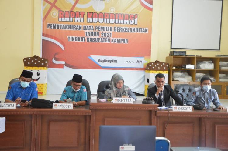 Melalui Rakor tersebut, KPU Kampar sampaikan hasil Rekapitulasi Pemutakhiran Data Pemilih Berkelanjutan Periode Juni berjumlah 478.991 Pemilih dengan rincian laki-laki 242.763 dan Perempuan 236.228.
