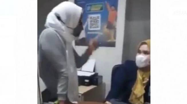 Viral perempuan melabrak pegawai bank BUMN di Kota Makassar saat jam kerja [SuaraSulsel.id/Istimewa]