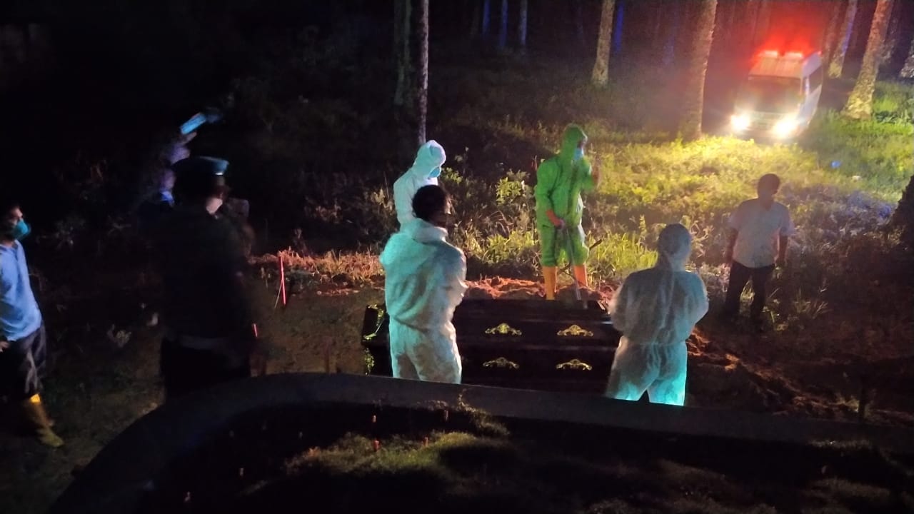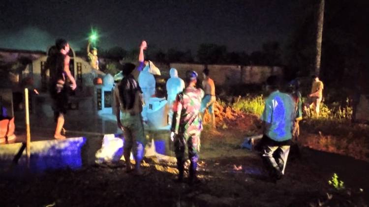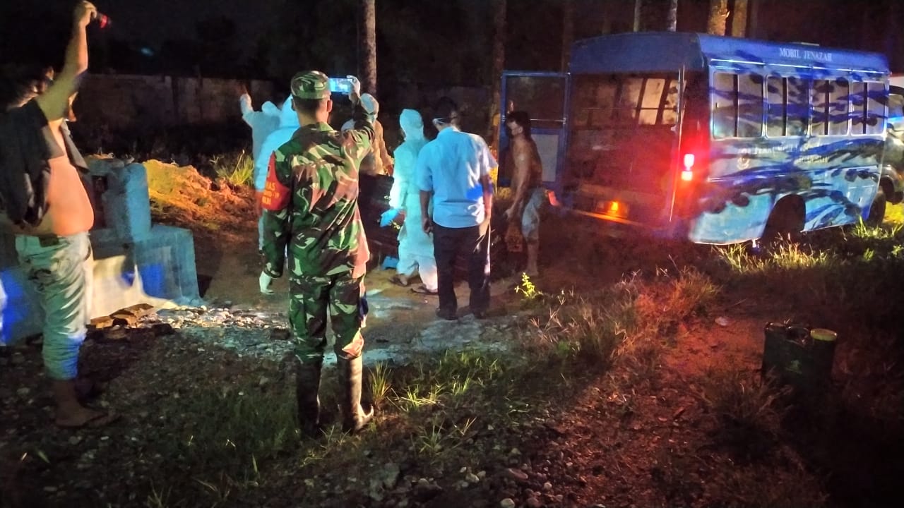 Tim Rs.Ibunda dan Puskesmas Bagan Batu saat melakukan proses pemakaman pasien positif Covid-19 di TPU Tionghoa di Jalan Lintas Riau- Sumut (perbatasan) Kepenghuluan Bagan Manunggal.