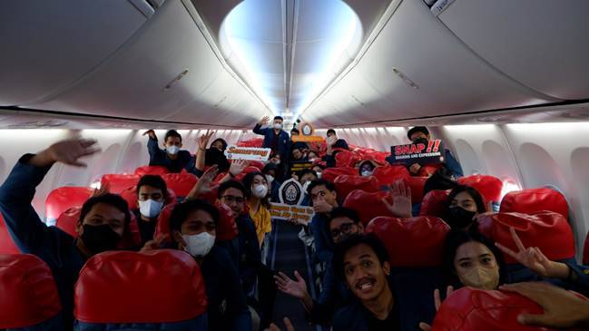 Kunjungan dan diskusi di pesawat udara (airport and aircraft visit) mencakup area kebandarudaraan, pembahasan interaktif di pesawat udara Boeing 737-900ER Lion Air. Foto: Devy Lubis.