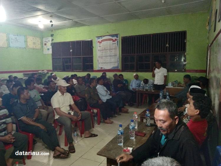 Suasana musyawarah masyarakat 4 kepenghuluan membentuk Komunitas Masyarakat Peduli Kampung.