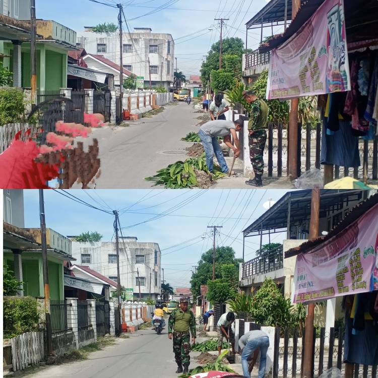 Warga Jadirejo Gang Tanjung bersama babinsa laksanakan goro pembersihan lingkungan.