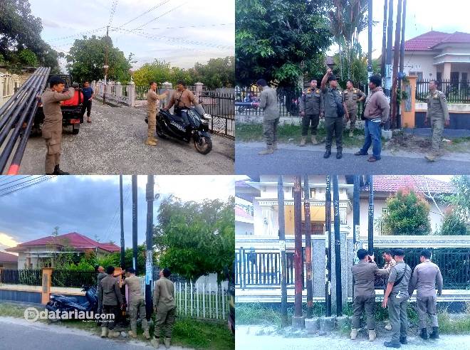 Membandel, Tiang Kabel Ilegal di Jalan Selamat Tetap Ditanam, Satpol PP Pekanbaru Langsung Turun Tangan