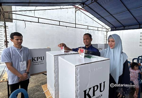 Calon Walikota Pekanbaru nomor 5, H Agung Nugroho dan istri saat nyoblos