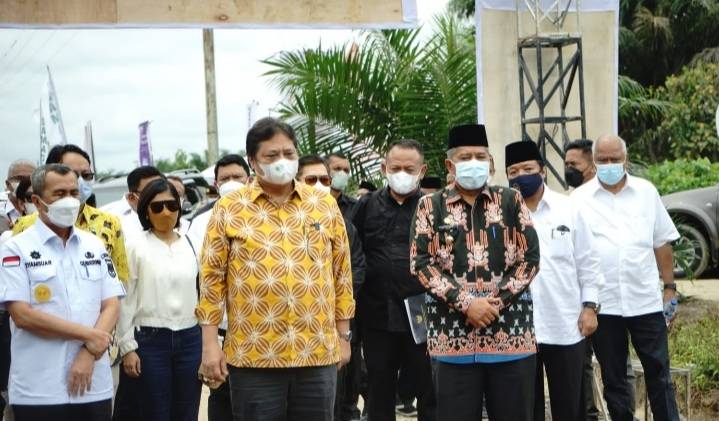 SIAK, datariau.com - Menteri Koordinator Bidang Perekonomian Airlangga Hartarto melakukan penanaman perdana program peremajaan sawit kemitraan strategis Percepatan Program Sawit Rakyat (PSR). yang berlokasi di Kampung Libo Jaya Kecamatan Kandis, Kabupaten Siak, Riau, Kamis (24/02/2022).