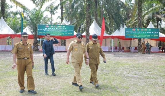 Bupati Siak Drs H Alfedri MSi melalui Wakil Bupati Siak H Husni Merza BBA MM tinjau dan ikuti upacara gladi penutupan TMMD ke-119.