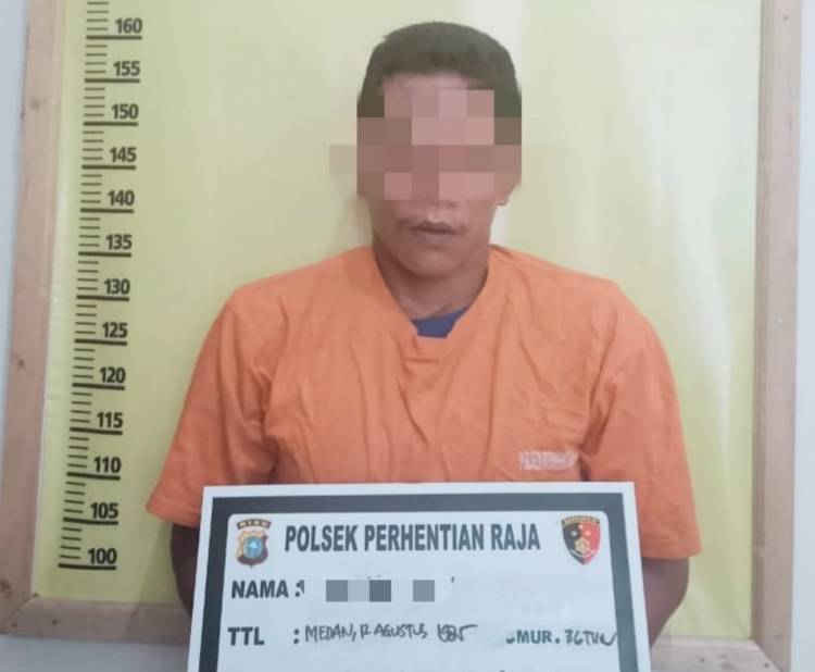 Pelaku saat diamankan Polsek Perhentian Raja.