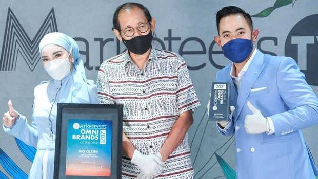 MS Glow Beauty saat meraih penghargaan dalam kategori all-in marketing on multiple platform, di acara "Marketeers Omni Brands of the year 2021", Kamis 9 September 2021. (Foto: dok)