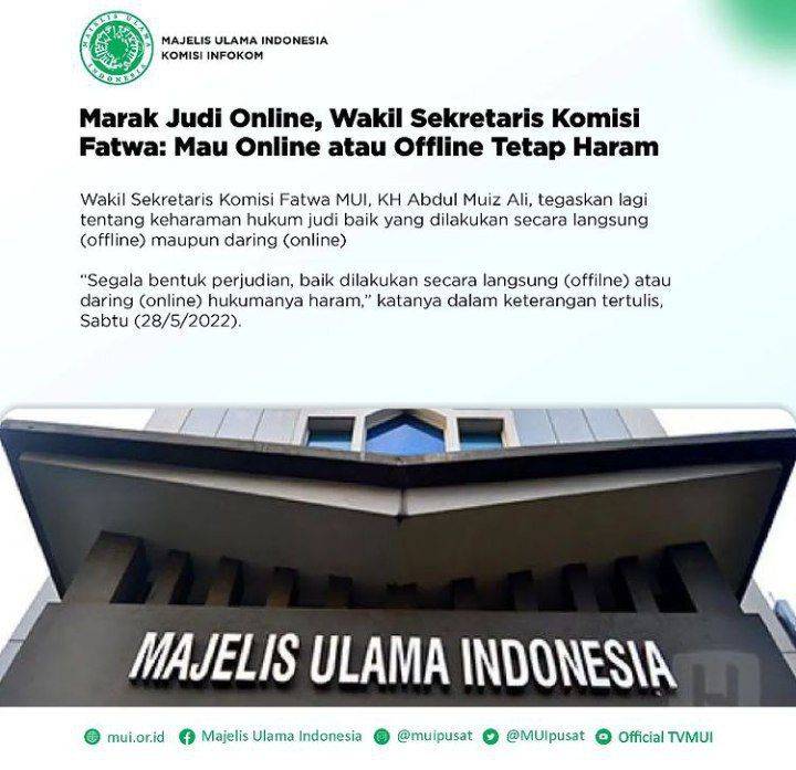 Judi Online Maupun Offline Haram menurut MUI /Instagram