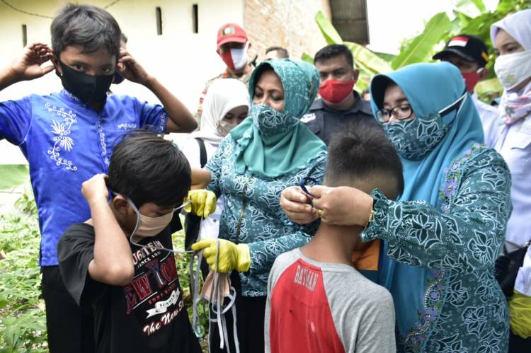 Muslimawati Catur Dampingi Ketua TP PKK Riau Bagikan Masker dan Sembako