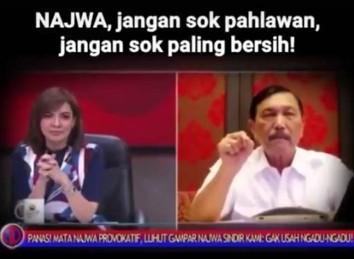 Dalam video itu, terlihat Najwa tengah berdebat dengan Menteri Koordinator Bidang Maritim dan Investasi Luhut Binsar Pandjaitan.