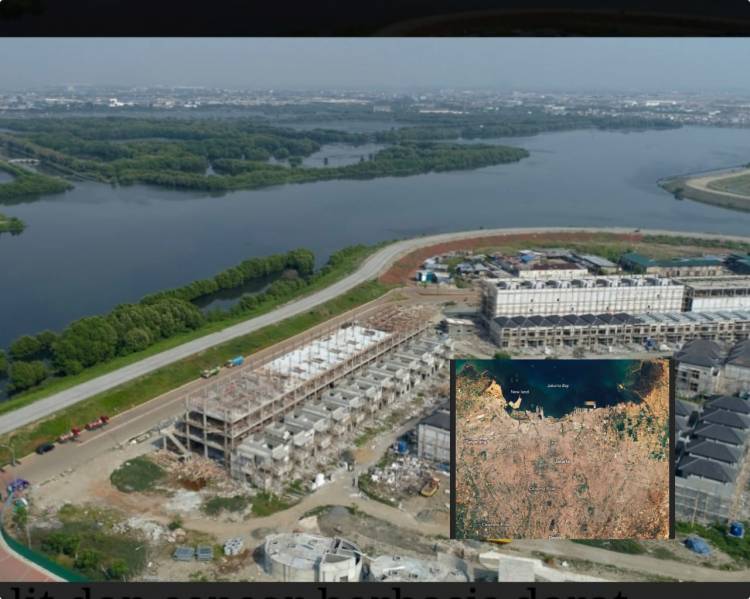 Suasana proyek pembangunan di kawasan Pulau D hasil reklamasi, di kawasan pesisir Jakarta (Kumparan) dan Foto Jakarta diambil 11 September 2019. (NASA)