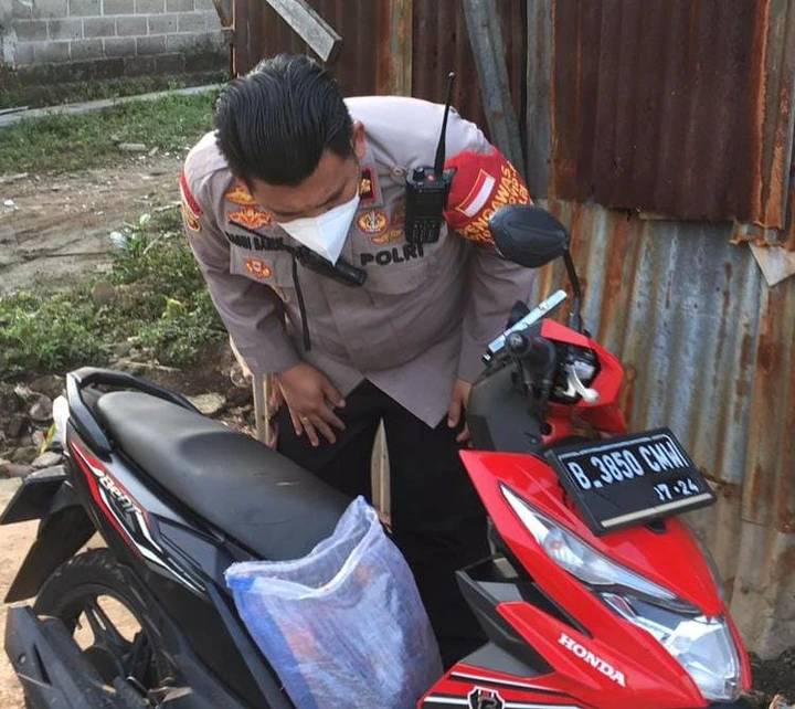 Kapolsek Karawaci, Kompol Bagin Efrata Barus tengah meneriksa motor yang ditemukan misteri tangan terputus.