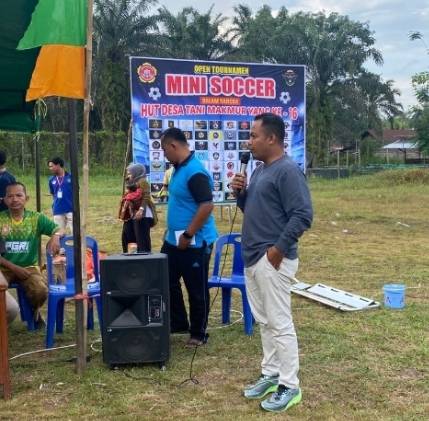 "Pertandingan open turnamen bola kaki mini soccer ini, diharapkan bisa memeriahkan ulang tahun desa tani makmur ke 16, mari kita jaga sportifitas pertandingan dan jadikan pertandingan bola ini sebagai wadah silaturahmi antar club," kata politisi penyair yang akrab dipanggil Alkindi.