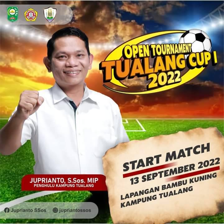 Open Turnamen Sepakbola Tualang Cup I Tahun 2022 dilapangan Bambu Kuning Desa Tualang.