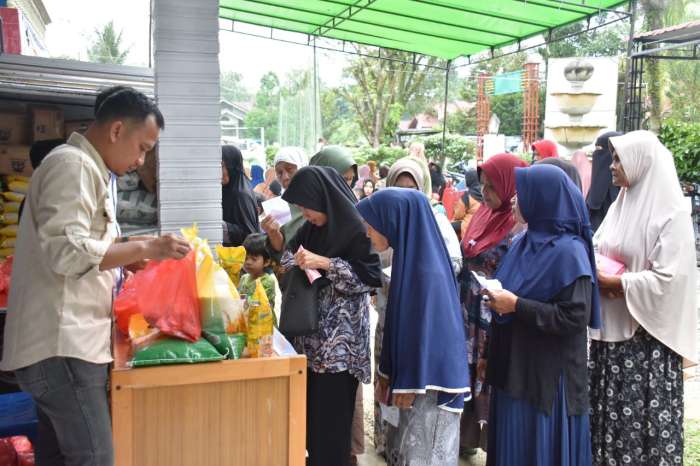 Suasana Operasi Pasar Murah Pemerintah Daerah Kabupaten Kampar di Desa Alampanjang Kecamatan Rumbio Jaya, Rabu