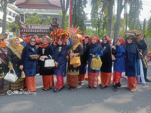 Pakaian Adat Khas Siompu Kampar Dipamerkan pada Carnaval Budaya HUT Ke-68 Provinsi Riau