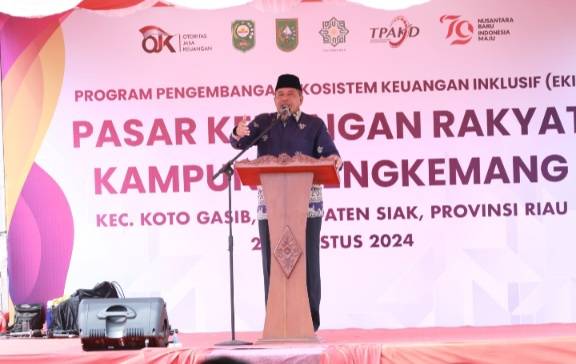SIAK, datariau.com - Bupati Siak Drs H Alfedri MSi membuka resmi Program Pengembangan Ekosistem Keuangan Inklusif (EKI) Pasar Keuangan Rakyat Kampung Sengkemang, Kecamatan Koto Gasib, Kabupaten Siak, Kamis (22/8/2024).