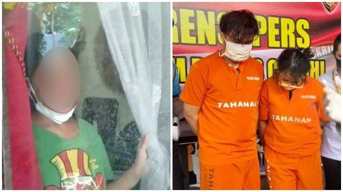 (Kiri) Kondisi korban Rohimah, ART yang menjadi korban penyiksaan dan penyekapan oleh majikannya di Kabupaten Bandung Barat dan (Kanan) Pasutri, majikan Rohimah yang kini telah ditetapkan sebagai tersangka. Kolase Tribunnews.com: TribunJ