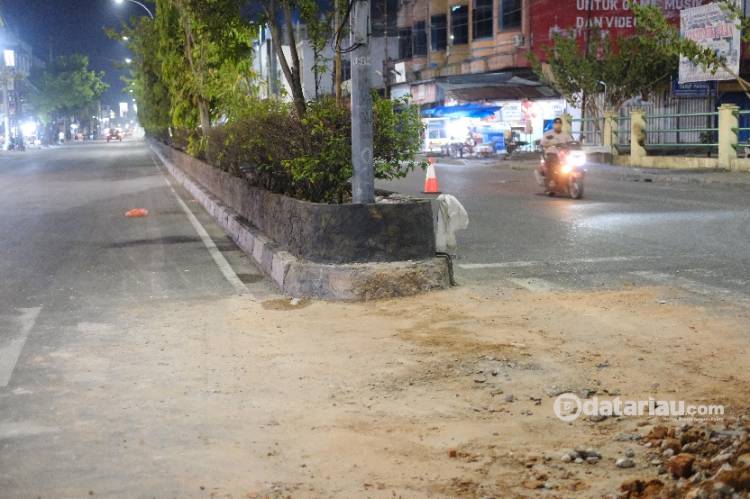 Bekas Minyak Pedagang Kuliner Jalan Cut Nyak Dien Pekanbaru Membahayakan Pengendara
