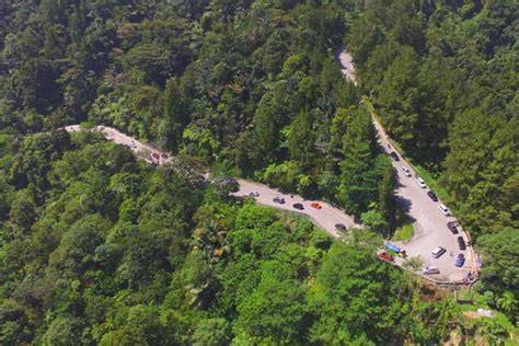 Foto aerial kendaraan melintas di Jalan Raya Padang-Jambi, kelok Sitinjau Laut, Padang, Sumatera Barat, Sabtu (1/7). (ANTARA/Iggoy el Fitra)
