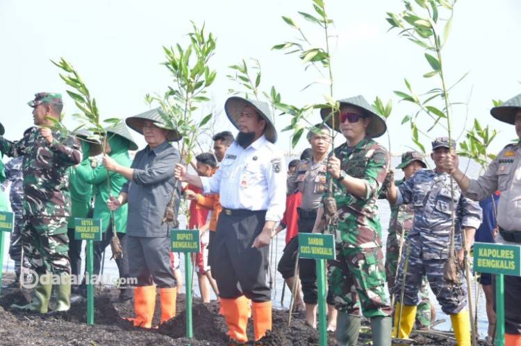 BANTAN, datariau.com - Bupati Bengkalis Kasmarni diwakili Asisten Pemerintahan dan Kesejahteraan Rakyat Andris Wasono menyambut baik dan apresiasi kegiatan penghijauan dan penanaman mangrove yang merupakan program unggulan dari Kepala Staf Angkatan Darat Jendral TNI Maruli Simanjuntak.