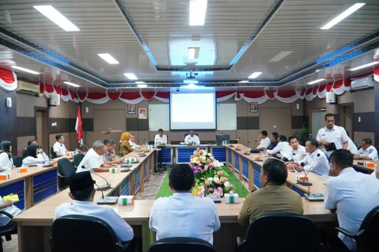 Bangkinang Kota, datariau.com - Dalam menyambut dan memeriahkan serta menyukseskan penyelenggaraan Hari Jadi Kabupaten Kampar ke 73 Tahun 2023 yang bertepatan pada hari Senin, 6 Februari 2023 mendatang, untuk itu Pj Bupati Kampar diwakili Sekretaris Daerah Kabupaten Kampar Drs H Yusri MSI didampingi Asisiten I Setda Kampar Ahmad Yuzar melakukan Rapat Persiapan Hari Jadi Kampar ke 73 yang dilaksanakan di lantai tiga Kantor Bupati Kampar, Rabu (4/1/2023). Dihadiri Kepala OPD di Lingkungan Pemerintah Kabupaten Kampar.