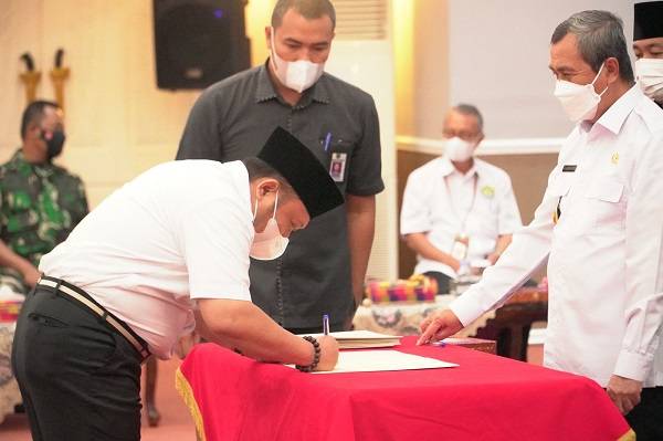 Penyerahan yang diadakan di Ruang Rapat Pauh Janggi Gedung Daerah ProvinsiTriau di Pekanbaru, Rabu (1/12/2021) dihadiri seluruh Forkopimda Riau, Lembaga, Instansi, Bupati/Walikota se-Provinsi Riau.