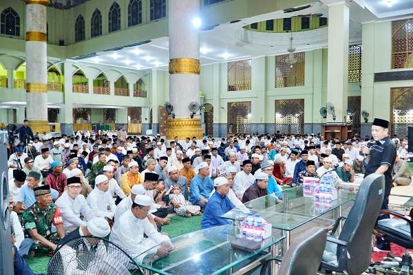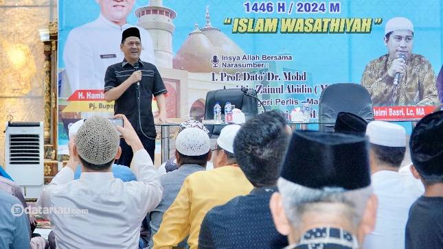Pj Bupati Kampar Hambali SE MH saat menyampaikan pidato dalam kegiatan tabligh akbar di Masjid Al Ikhsan Markaz Islamic Center Bangkinang.
