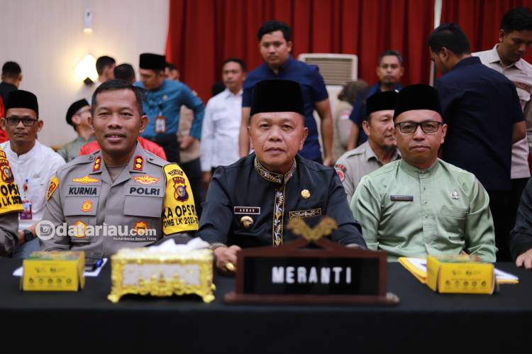 Plt Bupati Meranti H Asmar saat mengikuti Rapat Koordinasi Bersama Kepala BNPB RI di Aula Balai Serindit Pekanbaru, Jumat (19/1/2024).