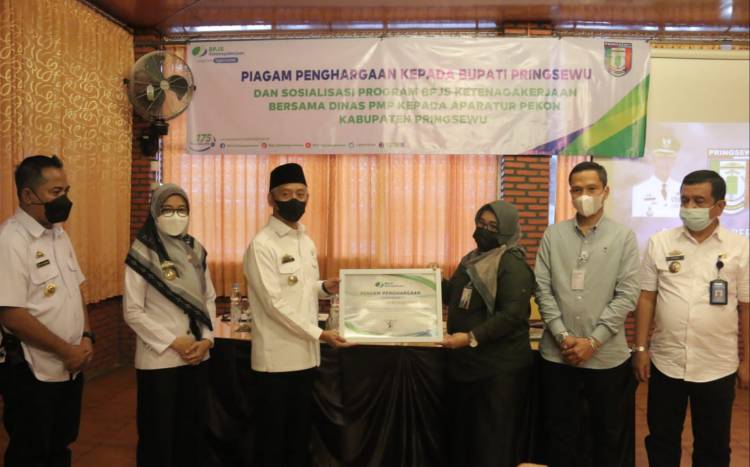 PRINGSEWU, datariau.com - Pemerintah Kabupaten Pringsewu menerima piagam penghargaan dari BPJS Ketenagakerjaan. Penghargaan diberikan atas peran serta pemerintah daerah dalam perlindungan Jaminan Sosial Ketenagakerjaan kepada para perangkat desa di kabupaten setempat.
