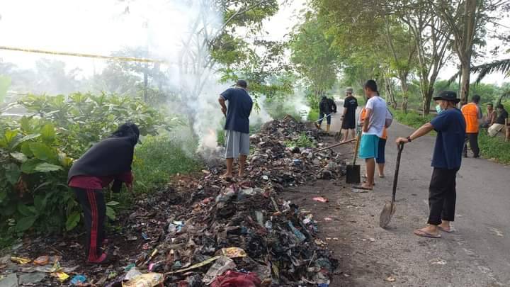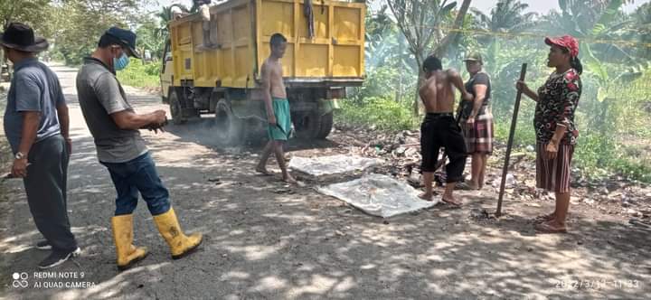 Kegiatan bakti sosial pembersihan tumpukan sampah Jalan Pendidikan oleh Perangkat Kampung Tualang, Ketua RK dan RT bersama warga lingkungan serta pemuda.