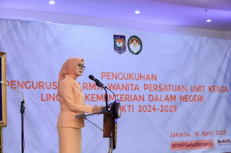 JAKARTA, datariau.com - Pengurus Dharma Wanita Persatuan (DWP) Unit Kerja di lingkup Kementerian Dalam Negeri (Kemendagri) masa bakti 2024 - 2029 resmi dikukuhkan secara serentak di Aula Gedung F Lantai 4 Badan Pengembangan Sumber Daya Manusia (BPSDM) Kemendagri, Jakarta, Rabu (16/4/2025).