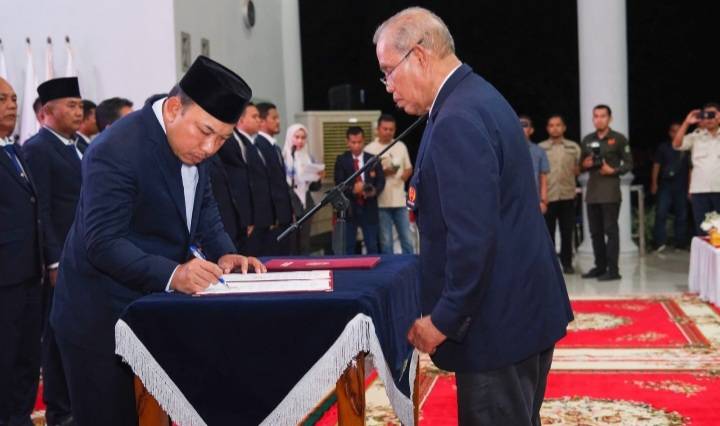 SIAK, datariau.com - Bupati Siak Drs H Alfedri MSi menghadiri pengukuhan dan pelantikan pengurus Komite Olahraga Nasional Indonesia (KONI) Kabupaten Siak masa bakti 2023-2027, di Balai Datuk 4 Suku, Komplek Perumahan Abdi Praja, Ahad (20/8/2023).