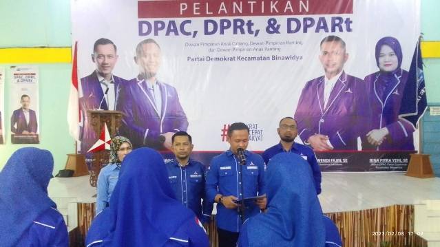Pelantikan pengurus DPAC ini dilaksanakan di Gedung Serba Guna Jalan Merak Sakti, Kelurahan Simpang Baru, Kecamatan Bina Widya, Pekanbaru. Prosesi pelantikan dimulai dengan pembacaan Surat Keputusan (SK) DPD Demokrat Riau dan SK dari Ketua Demokrat Kota Pekanbaru.