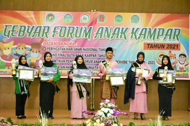 Sementara itu, berkaitan pemilihan Duta Anak Kampar, Nurul Islami asal Kecamatan Kuok dinobatkan sebagai pemenang pertama dalam pemilihan Duta Anak Kampar 2021, disusul pemenang kedua Aldi Suhendar dari Kecamatan Kampar dan pemenang ketiga Alya Wahyudi asal Kecamatan Bangkinang Kota.