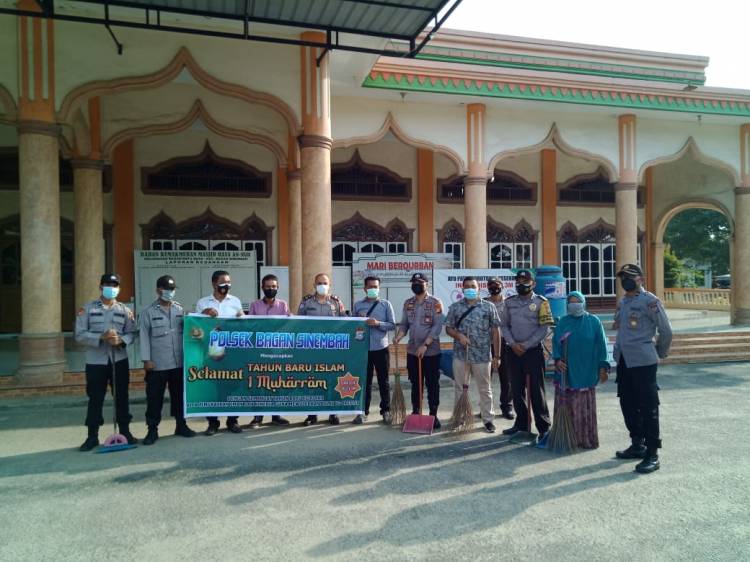 Peringati Tahun Baru Islam, Polsek Bagan Sinembah Bersih Masjid Raya Annur Bagan Batu
