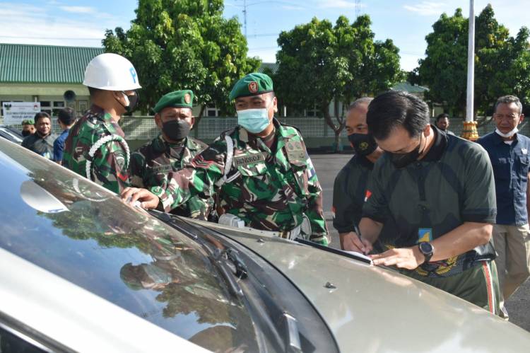 Personel Korem 043/Gatam Cek Fisik dan Administrasi Kendaraan