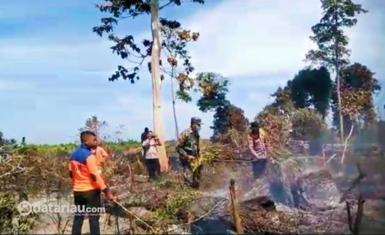 Tim Satgas Karhutla Rohul saat berjibaku memadamkan titik api di Desa Kepenuhan Tengah Kecamatan Kepenuhan.