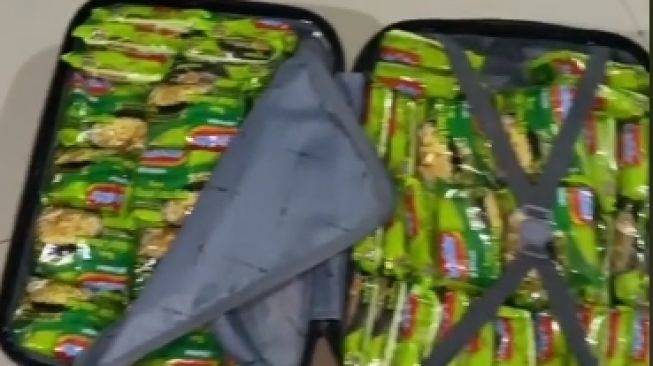 Koper seorang pria yang penuh hanya berisi Indomie limau kulit. (TikTok/yaodanlah)