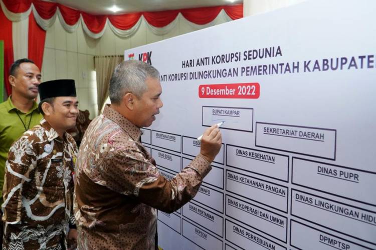 "Tidak boleh ada keraguan lagi pada kita untuk memerangi korupsi. Tentu, ini bukan pekerjaan yang ringan. Ini merupakan pekerjaan yang akan terus mendapatakan tantangan dan perlawanan. Namun, kita harus terus melangkah tegap, dengan derap mantap, maju kedepan melawan serangan-serangan balik dengan satu tujuan, yakni menciptakan Kabupaten Kampar yang lebih bersih untuk sebuah tujuan yang mulia, yaitu menciptakan sebuah masyarakat lebih sejahtera dan adil," kata Pj Bupati Kampar Kamsol.