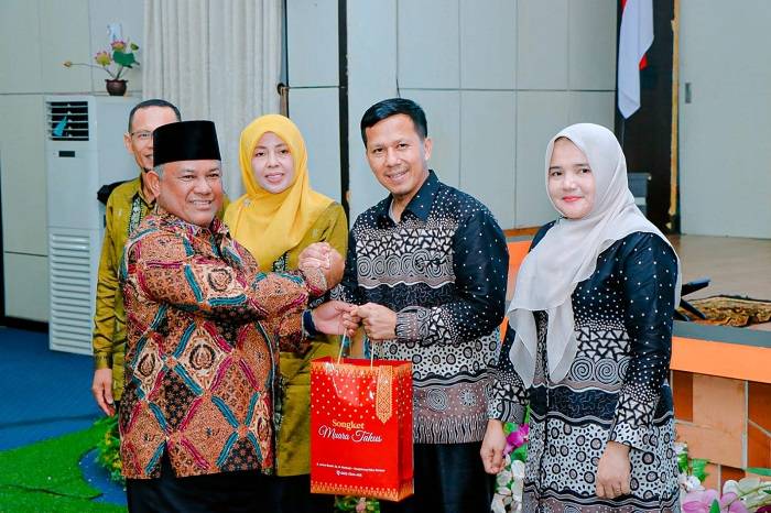 BANGKINANG KOTA, datariau.com - Pj Bupati Kampar Hambali SE MH beserta Istri Ny Rucana Djayanti Hambali menghadiri acara Pisah Sambut Ketua dan Wakil Ketua Pengadilan Agama (PA) Bangkinang Kelas 1B, Ketua dari Nongliasma SAg MH kepada Dr H Faisal Saleh Lc MSi dan Wakil Ketua dari Dr Hasan Nul Hakim SHI MA kepada Padmilah SHI MA yang dilaksanakan di Aula Balai Bupati Kampar, Rabu (26/2/2024).