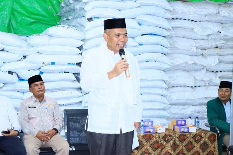 Pj Bupati Kampar Ikut Serahkan 100 Paket Sembako di Kota Garo dari Pengusaha Pupuk Sugianto
