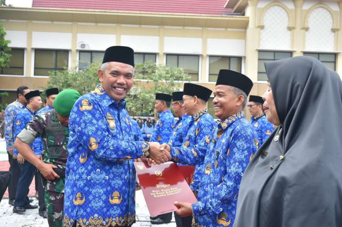 Pembina upacara dipimpin Pj Bupati Kampar Dr H Kamsol MM dihadiri Sekda Kampar Drs H Yusri MSi, Dandim 0313/KPR Letkol Inf Mulyadi, Wakapolres Kampar Rachmat, Ketua BPN Kampar Dedi Kusnadi, Kemenag Kampar Fuadi Ahmad, Ketua KPU Maria Aribeni dan Seluruh Kepala OPD, Para ASN dan THL di lingkungan Pemerintah Kabupaten Kampar.