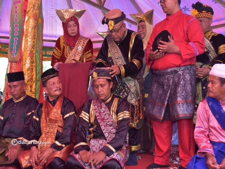 Pj Bupati Kampar Sampaikan Pesan Penting Saat Penobatan Datuk Paduko Majo dan Ninik Mamak Bendang Kenegerian Air Tiris